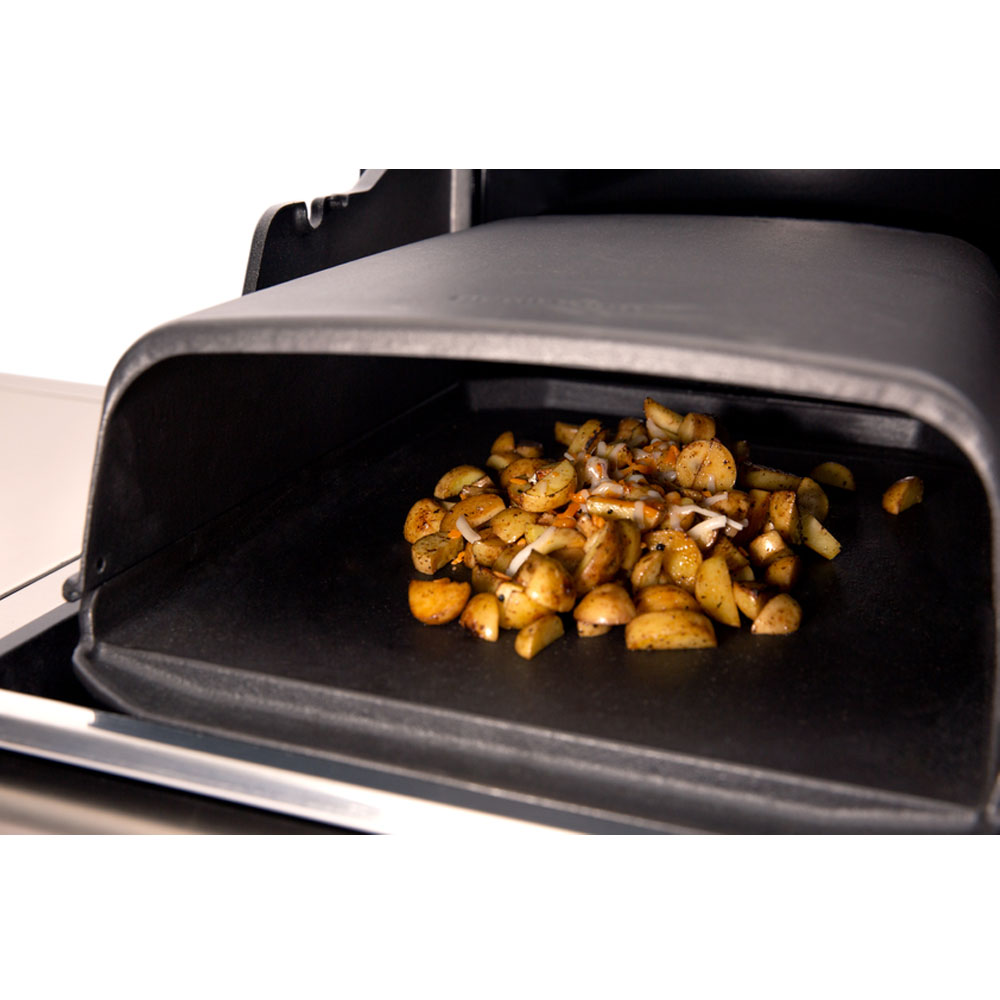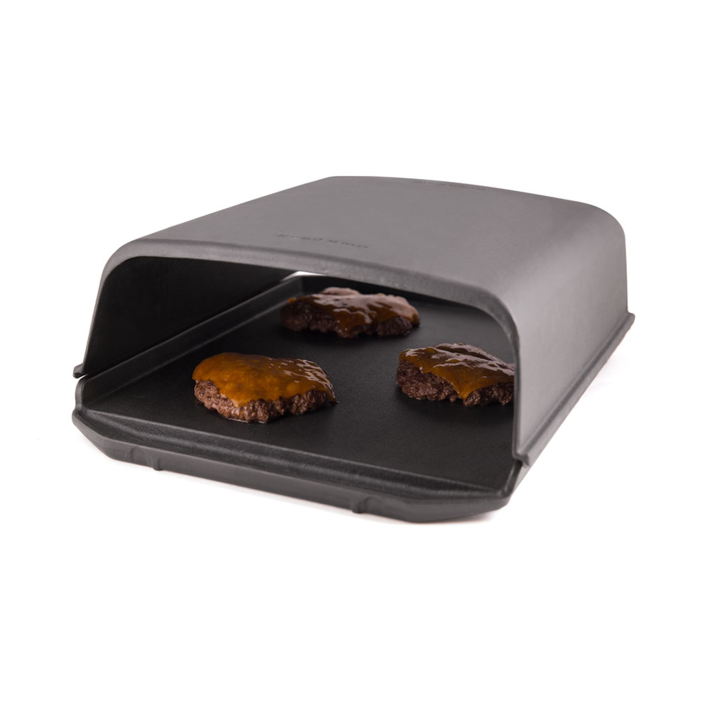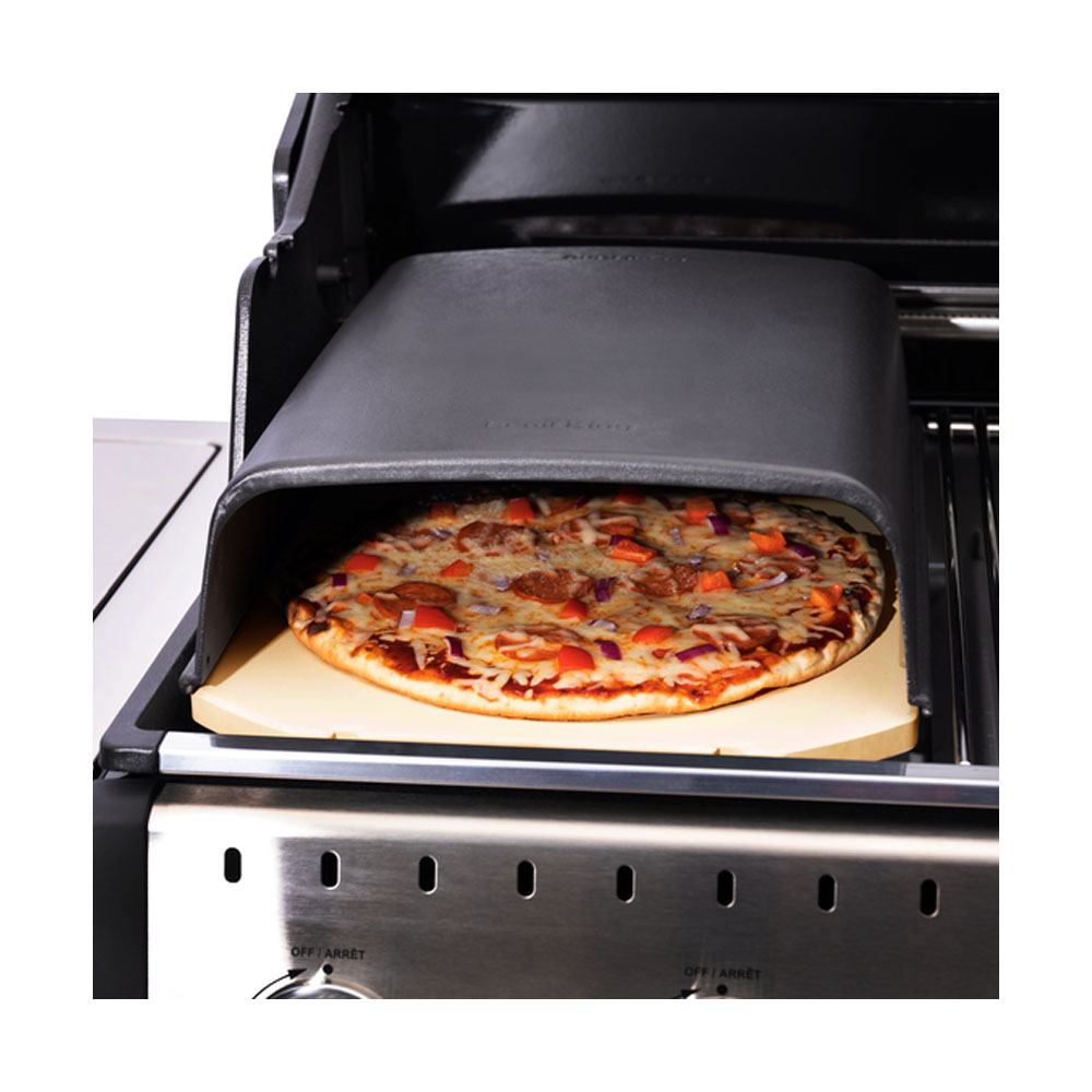 Empata perfectamente con la piedra cerámica rectangular de Broil king y la plancha de fierro vaciado de la misma marca. Retiene el calor hacia abajo y lo distribuye sobre los alimentos que se hornean en el asador.